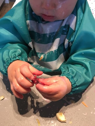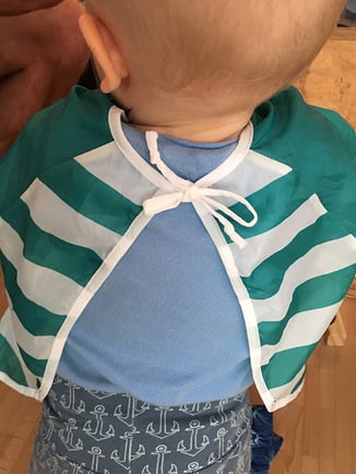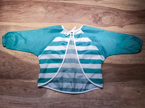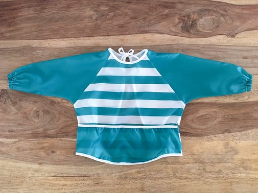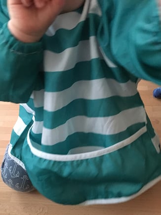 Mein Sohn mag unbedingt gern selber essen und natürlich ist das noch eine riiieeesige Sauerei. Da helfen auch keine hochgekrempelten Ärmel oder ein normales Lätzchen. Er schafft es immer, das seine Sachen nach dem Essen aussehen, als ob er sie schon eine Woche an hatte. An farbenfrohes Obst wie Kirschen oder Heidelbeeren ist schon gar nicht zu denken! Die Lösung ist ein Ärmellätzchen. Natürlich gibt es da einige zu kaufen, aber mir sind diese meist zu steif und globig. Ausserdem ist das mal wieder eine gute Gelegenheit, etwas zu nähen.