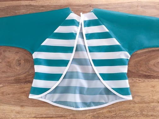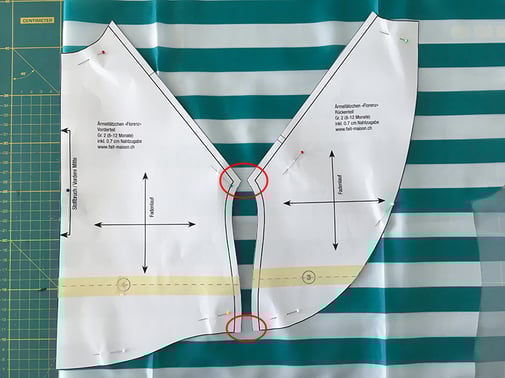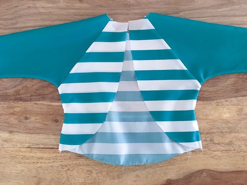 Als nächstes die Rückenteile entsprechend der Markierungen an die hinteren Ärmelteile nähen.