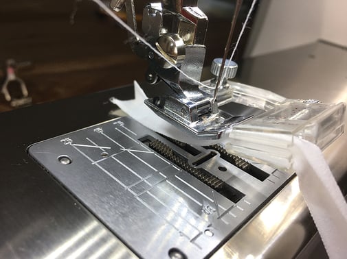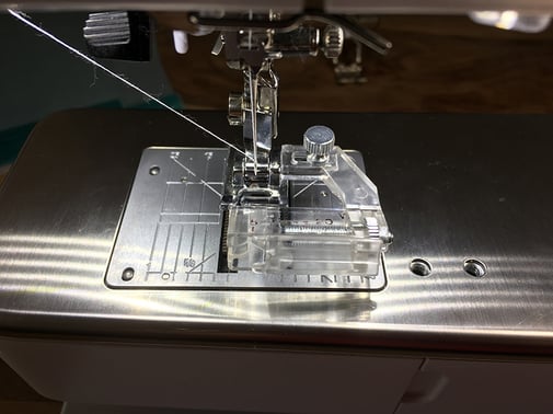 Ein Bandeinfasser-Fuss erleichtert das Annähen des Falzgummis deutlich, ist aber optional.