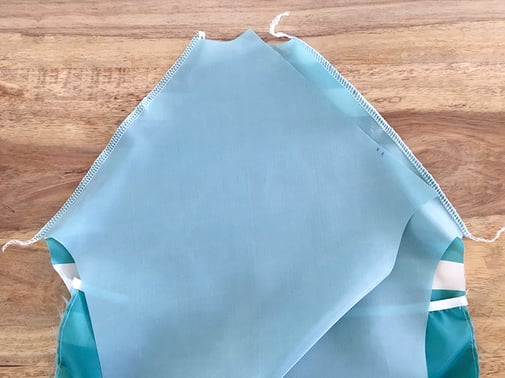 Die Oberkante ist versäubert und leicht gekräuselt. Die überstehenden Enden könnt ihr später abschneiden.