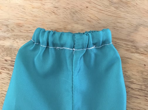Die vorgebügelten Bündchen knappkantig abnähen und eine kleine Lücke für den Gummi offen lassen.