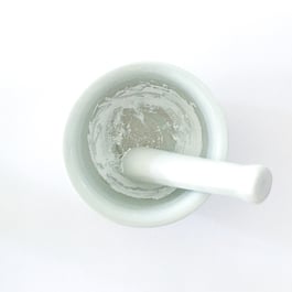 Zinkoxid und Titandioxid in einem kleinen Mörser gut verreiben bis keine Klümpchen mehr zu sehen sind.